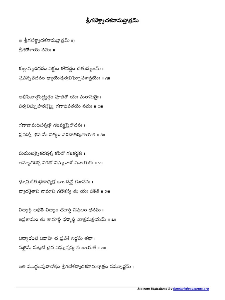 Ganesha Dwadasanama Stotram Telugu Pdf File209 Computing And Information Technology Change the stotram title from english to telugu , sanskrit , hindi , tamil , kannada , gujarati , oriya , punjabi & malayalam using for each stotram you can download stotram lyrics in pdf format in eight indian languages.